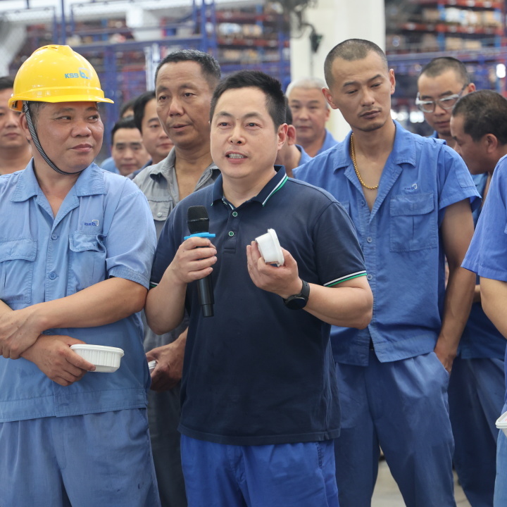 第一小队由凯士比北亚区执行总裁贺钧先生和凯士比北亚人力资源总监&上海凯士比市场总监滕嫣然女士带队,标准泵工厂厂长左炳先生和工程泵工厂厂长袁学翔陪同,前往一车间和二车间慰问员工。